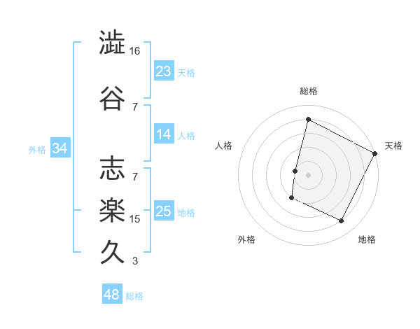 澁谷 志楽久さんの総格は48画の4点!