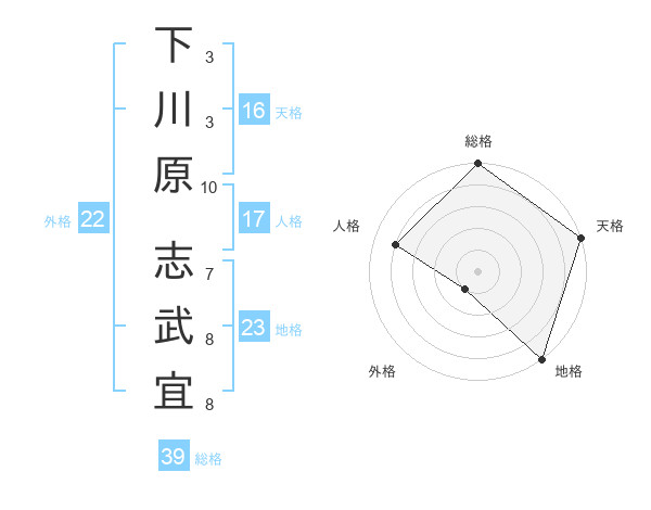 下川原 志武宜さんを姓名の画数から五運を鑑定