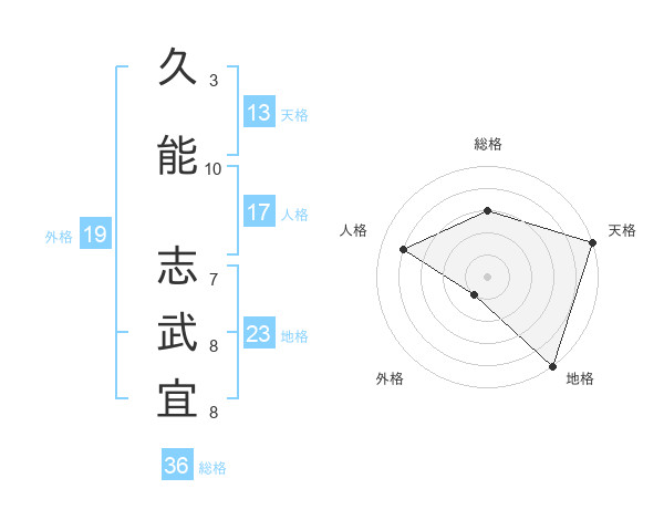 久能 志武宜さんを姓名の画数から五運を鑑定