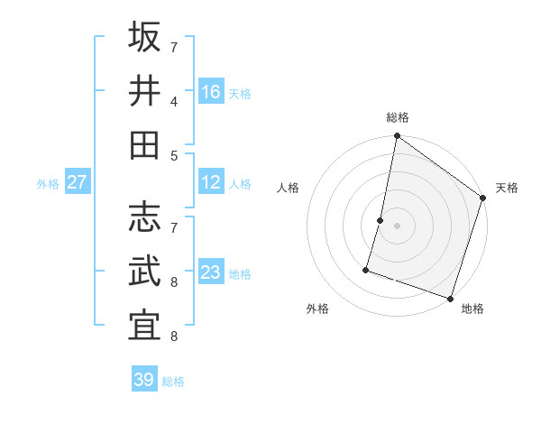 坂井田 志武宜さんを姓名の画数から五運を鑑定