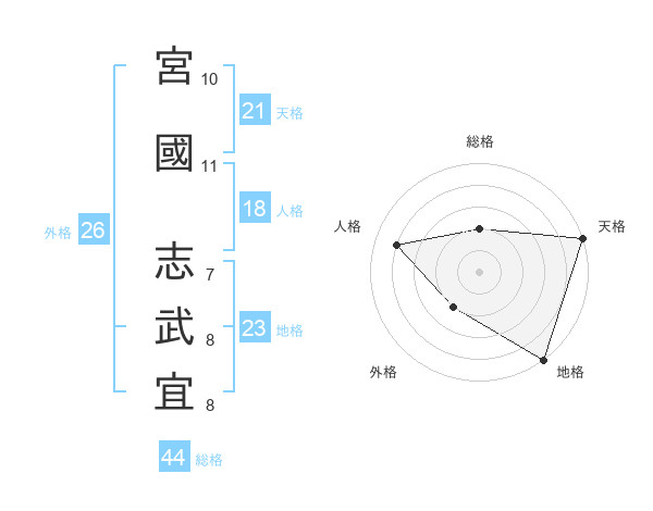 宮國 志武宜さんを姓名の画数から五運を鑑定