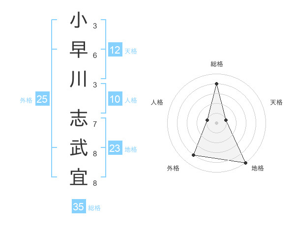 小早川 志武宜さんの総格は35画の4点!