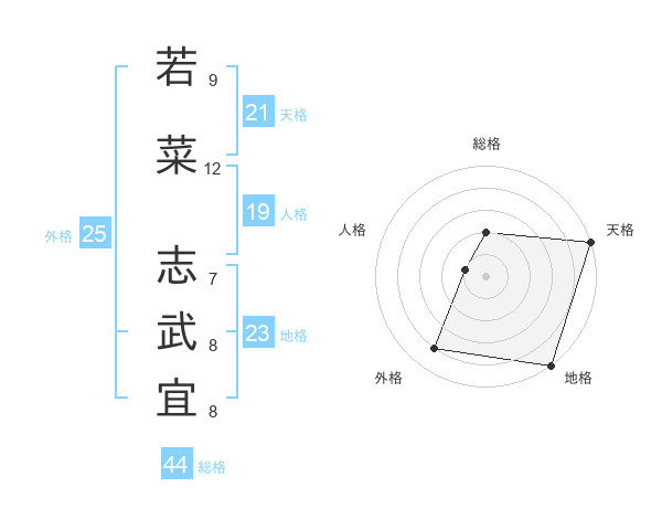 若菜 志武宜さんの総格は44画の2点!