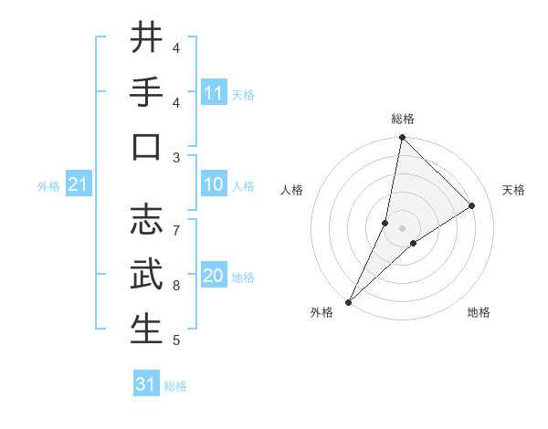 井手口 志武生さんの総格は31画の5点!
