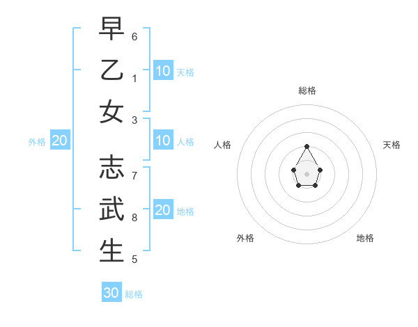 早乙女 志武生さんを姓名の画数から五運を鑑定