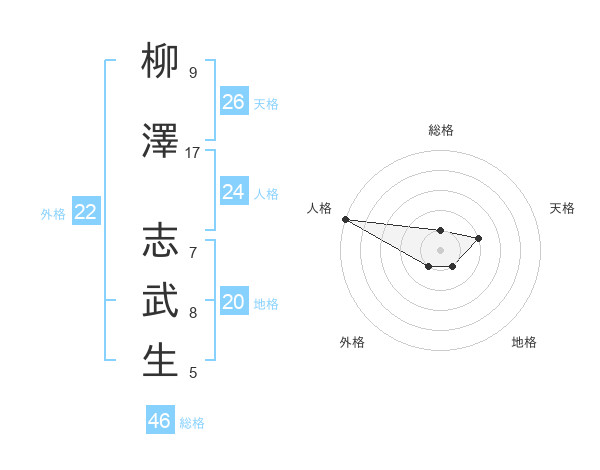 柳澤 志武生さんを姓名の画数から五運を鑑定