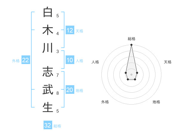 白木川 志武生さんの総格は32画の5点!