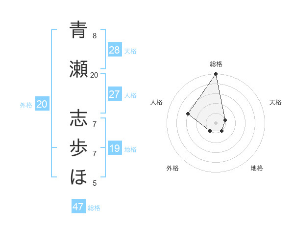 青瀬 志歩ほさんを姓名の画数から五運を鑑定
