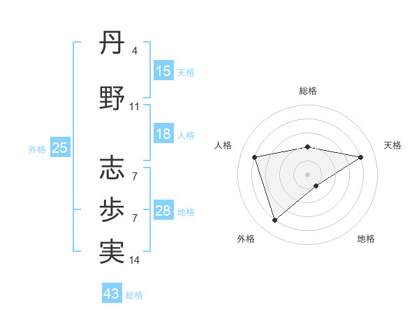 丹野 志歩実さんを姓名の画数から五運を鑑定