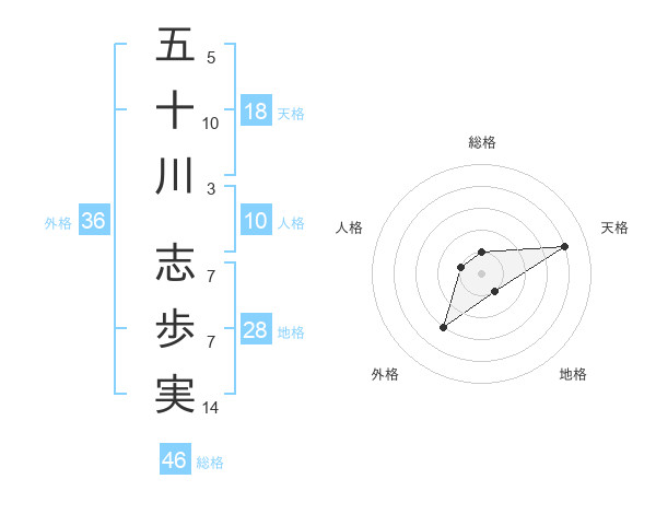 五十川 志歩実さんを姓名の画数から五運を鑑定