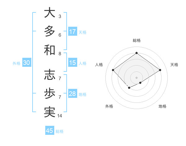 大多和 志歩実さんを姓名の画数から五運を鑑定