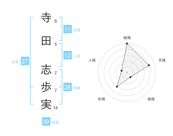 寺田 志歩実さんを姓名の画数から五運を鑑定