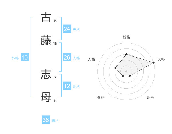 古藤 志母さんの天格は24画の5点!