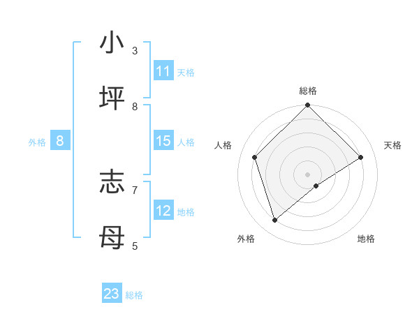 小坪 志母さんの総格は23画の5点!