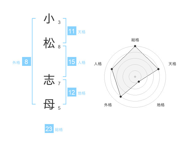 小松 志母さんの総格は23画の5点!