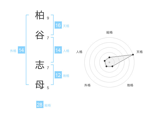 柏谷 志母さんを姓名の画数から五運を鑑定