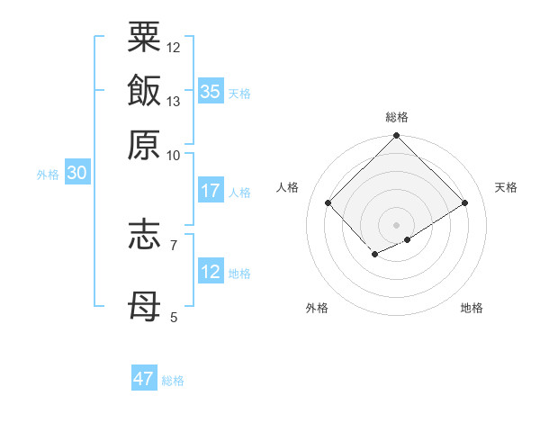 粟飯原 志母さんを姓名の画数から五運を鑑定