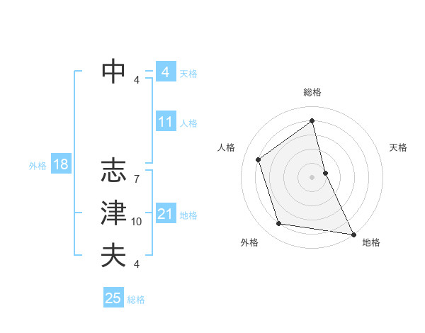 中 志津夫さんの総格は25画の4点!