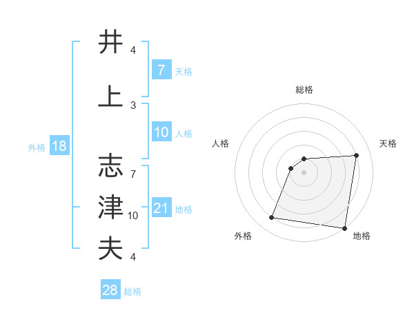 井上 志津夫さんを姓名の画数から五運を鑑定