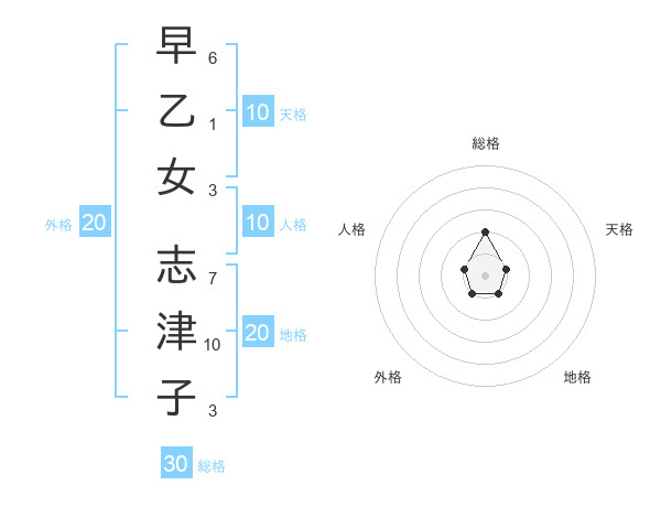 早乙女 志津子さんを姓名の画数から五運を鑑定