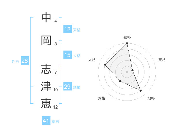 中岡 志津恵さんを姓名の画数から五運を鑑定