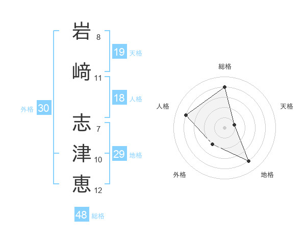 岩﨑 志津恵さんの総格は48画の4点!