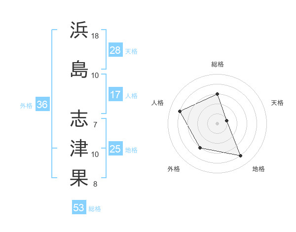 浜島 志津果さんを姓名の画数から五運を鑑定