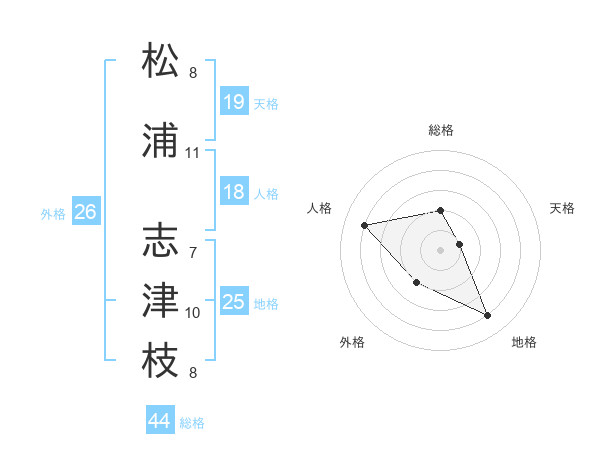 松浦 志津枝さんを姓名の画数から五運を鑑定