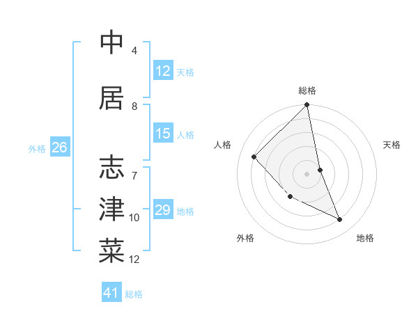 中居 志津菜さんを姓名の画数から五運を鑑定