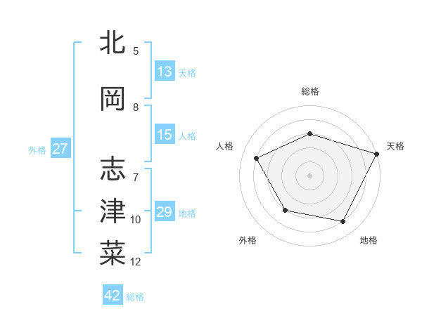 北岡 志津菜さんの天格は13画の5点!