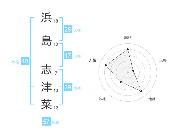 浜島 志津菜さんの天格は28画の1点!
