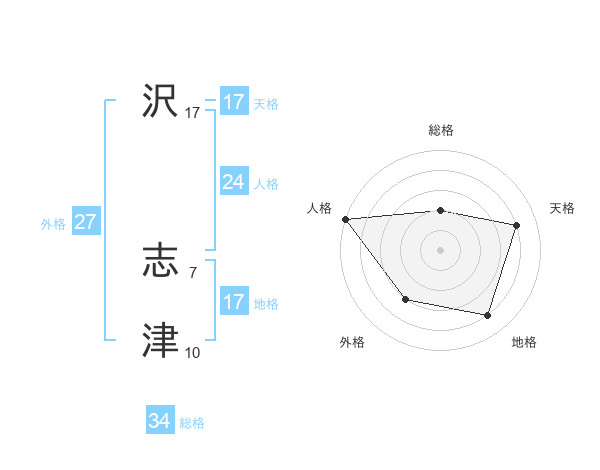 沢 志津さんの天格は17画の4点!