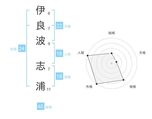 伊良波 志浦さんを姓名の画数から五運を鑑定