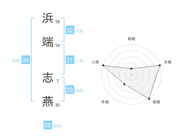 浜端 志燕さんの天格は32画の5点!