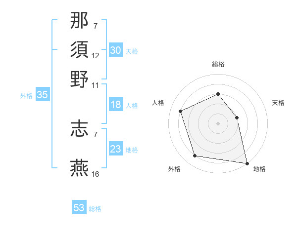 那須野 志燕さんの総格は53画の3点!