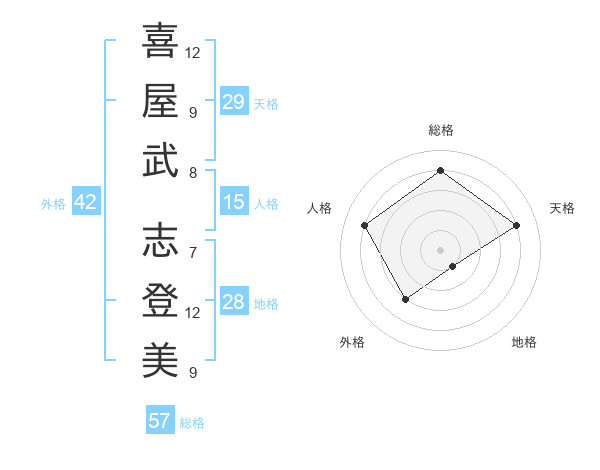 喜屋武 志登美さんを姓名の画数から五運を鑑定