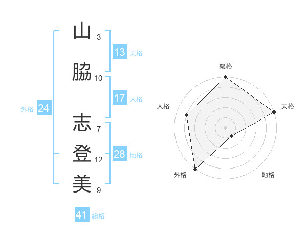 山脇 志登美さんの総格は41画の5点!