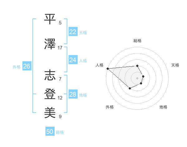 平澤 志登美さんを姓名の画数から五運を鑑定