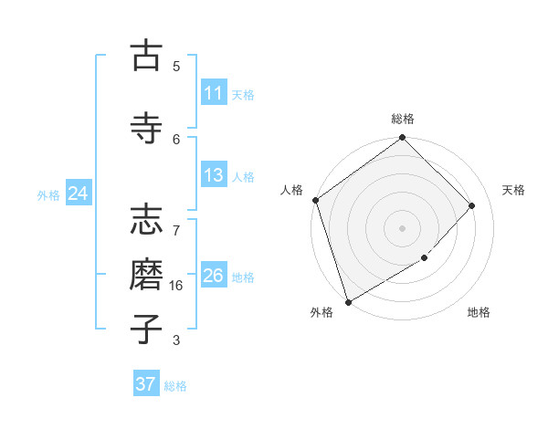 古寺 志磨子さんを姓名の画数から五運を鑑定