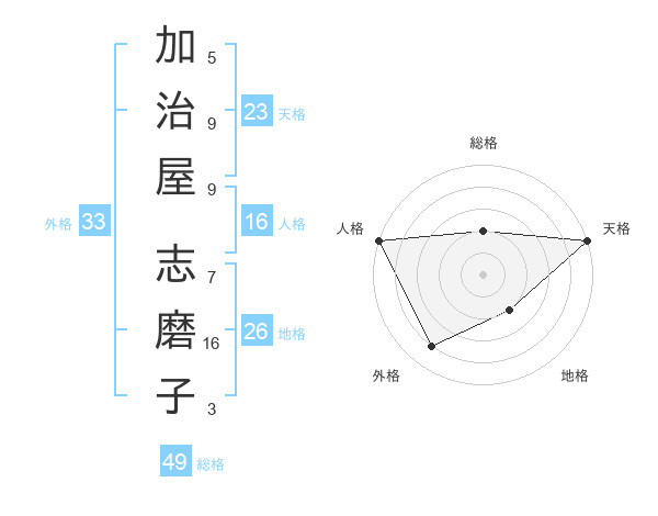 加治屋 志磨子さんを姓名の画数から五運を鑑定