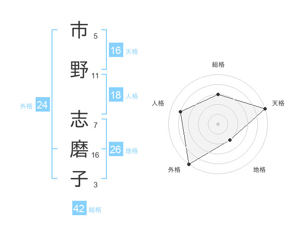 市野 志磨子さんを姓名の画数から五運を鑑定