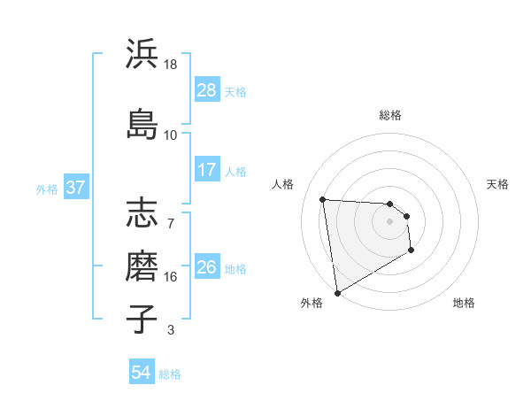浜島 志磨子さんを姓名の画数から五運を鑑定