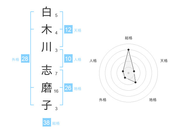 白木川 志磨子さんの総格は38画の4点