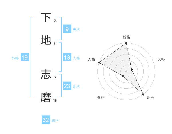下地 志磨さんの総格は32画の5点!