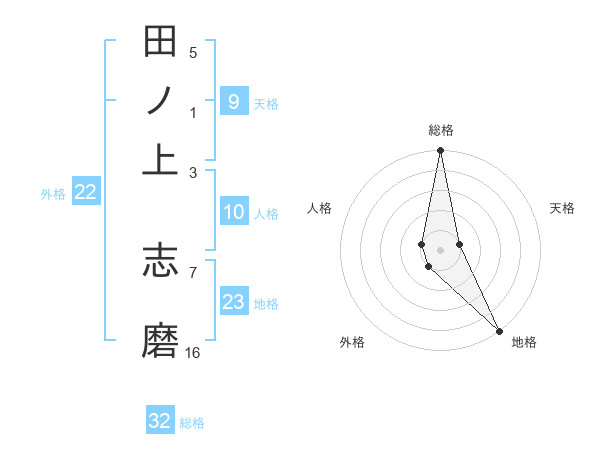 田ノ上 志磨さんの総格は32画の5点!