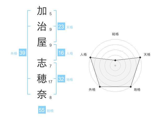 加治屋 志穂奈さんを姓名の画数から五運を鑑定