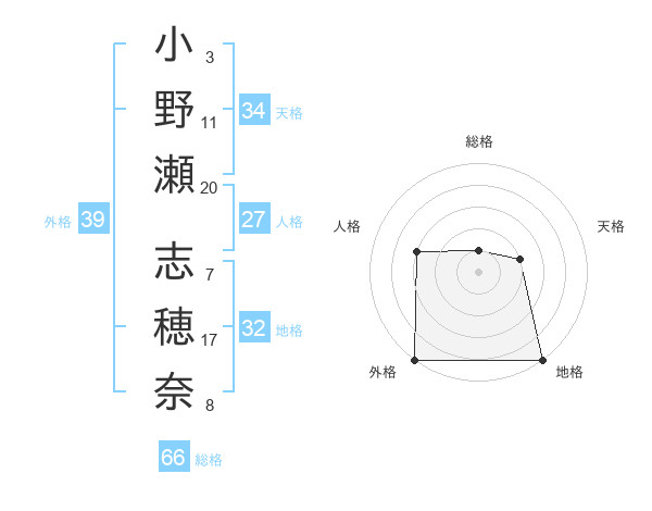 小野瀬 志穂奈さんを姓名の画数から五運を鑑定
