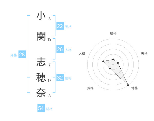 小関 志穂奈さんの総格は54画の1点!