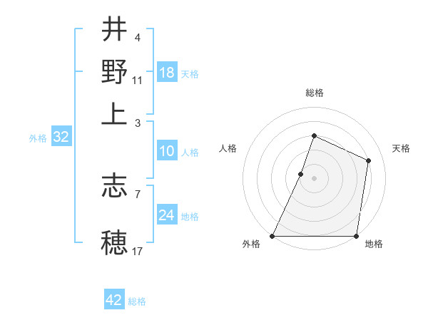 井野上 志穂さんを姓名の画数から五運を鑑定