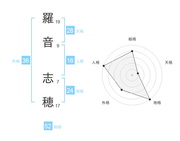 羅音 志穂さんの総格は52画の4点!